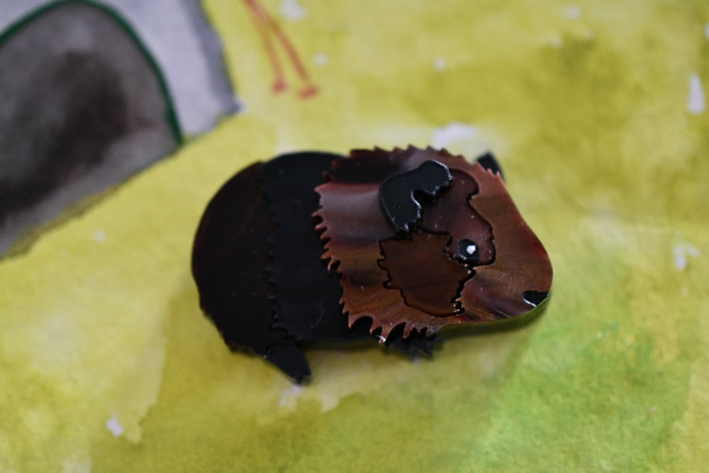 SECONDS- Guinea pig brooch - brown black