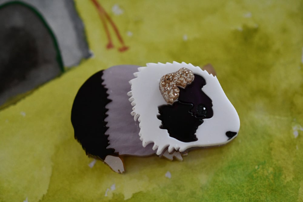 SECONDS- Guinea pig brooch - purple gold